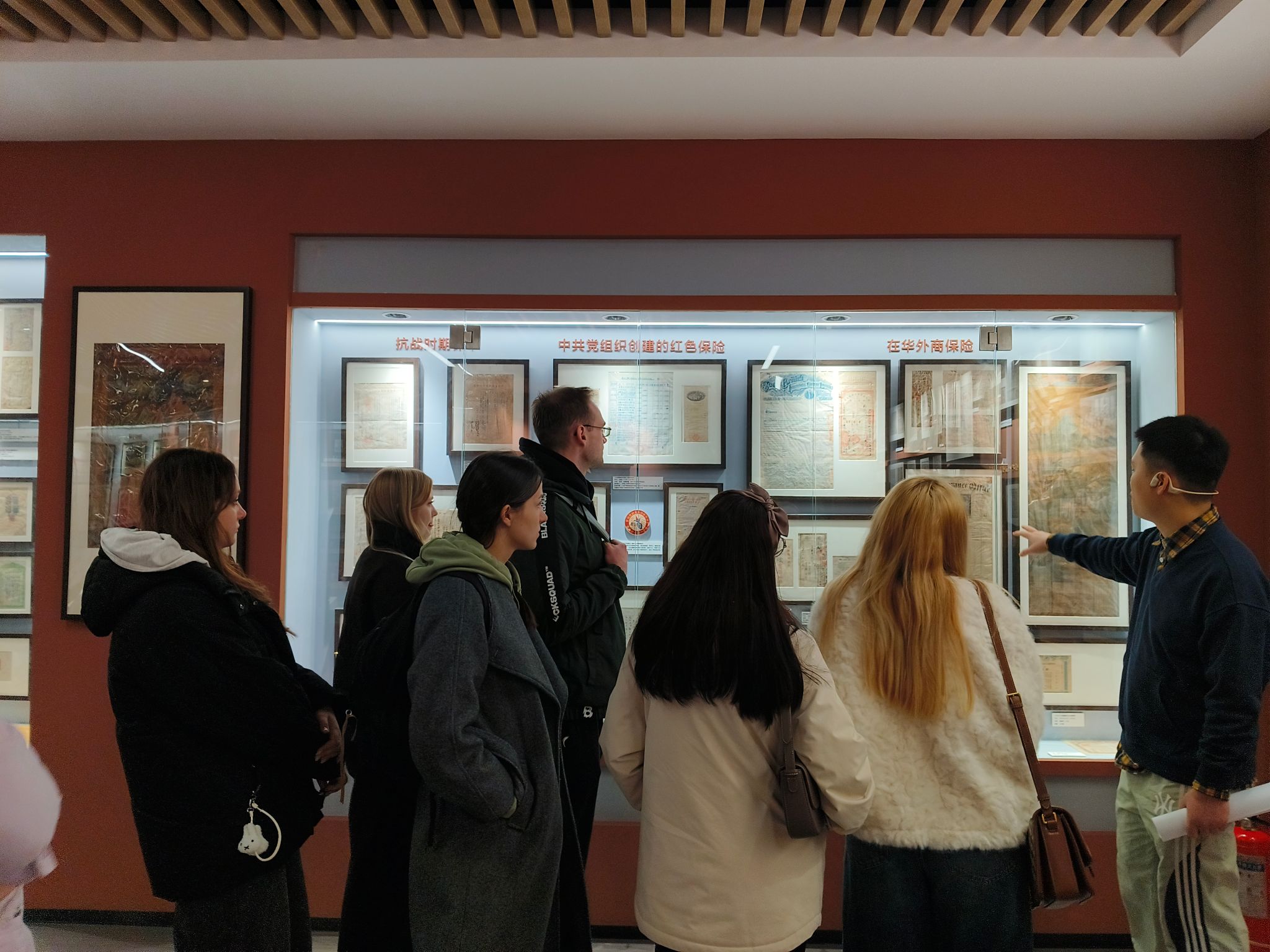 在博物馆参观环节,师生们通过生动的实物展陈与系统的文献梳理,深入了解了中国保险业从萌芽到成熟的历史脉络,以及其在当代经济社会发展中所承担的重要功能。留学生们尤其对保险在风险管理与社会治理中的实际应用表现出浓厚兴趣,结合本国情况与讲解教师展开了具有跨文化视角的讨论,现场互动积极,气氛热烈。
