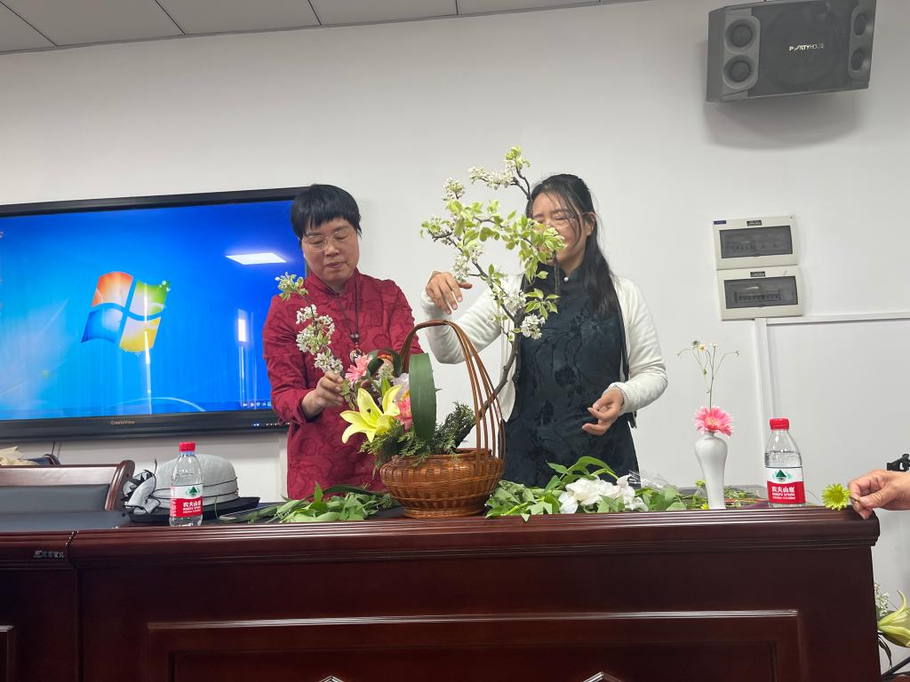 活动期间,来自河南科技大学的花艺师张志红老师和王晓莹老师,从插花艺术的历史发展,为我们讲解了插花意义、插花要素、插花技巧、色彩搭配、基本造型等花艺知识,同时演示了插花步骤,演绎了插花技巧,活灵活现,将中国传统插花艺术生动地呈现在学院教职工面前。教职工在活动中互动交流,品味生活,也通过亲自动手,发挥想象力、创造力,创作出了一件件或诗情画意、或高雅别致、或清新怡人的花艺作品。