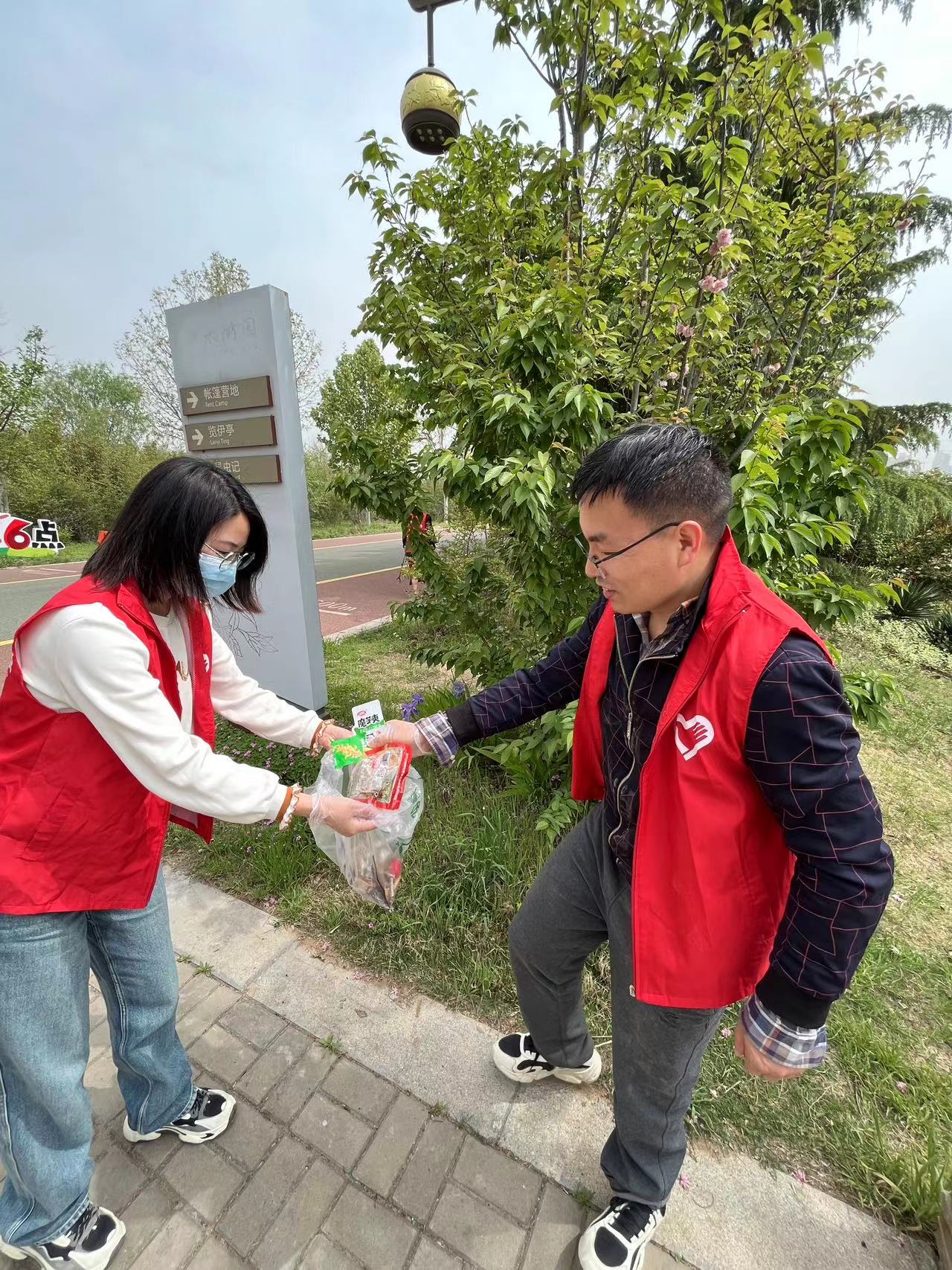 商学院教工志愿者在伊滨区伊水游园清理垃圾,用自己的实际行动为绿色公园建设增光添彩。大家分工明确,相互配合,穿梭在河岸边、道路旁、草丛中,捡拾公园里垃圾和杂物。他们主动帮助环卫工人清理隐蔽角落的烟头,并主动向游玩的市民宣传环保理念,耐心讲解当前环境保护工作的重要性,向群众普及环保知识,号召市民朋友们一起共同维护美好的公园环境。