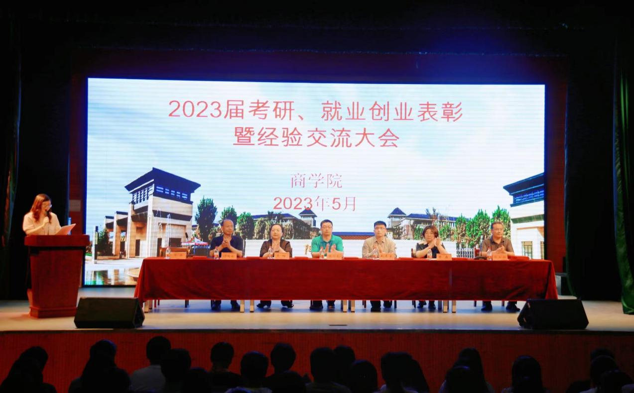 敦品励学,涵养优良学风,明辨笃行,领航青春梦想。5月18日上午,商学院举行了2023届考研、就业创业表彰暨经验交流大会。校招生就业处处长刁鸿安、教务处处长赵冬生、党委学工部部长吴瑶、团委书记曹嘉以及商学院领导班子成员出席本次活动。