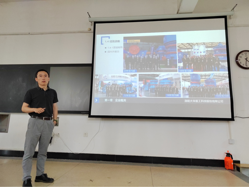 王鹏鹏从自身的学习经历和十余年的外贸从业经历出发,简单介绍了在大学应该培养的能力,企业需要的外贸业务员,外贸业务员需要具备的综合素质等,详细地向大家说明了国际贸易专业与商务英语专业之间的优势与劣势,以及国际贸易实操中所遇到的客户及存在的问题。随后,同学们就自身关心的问题向王鹏鹏进行提问,包括企业新员工入职培训以及应届毕业生的入职要求等。王鹏鹏表示,大华重工科技的发展是美好的,期待各位青年能够为大华的发展注入新鲜活力,也希望更多的优秀学子加入大华,与大华人共同绘制企业发展的新蓝图。