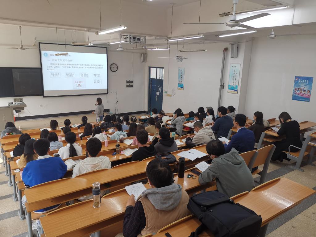 课堂教学活动中,李新颖讲授课程为《货币银行学》,他从“利息的本质”“利息率的种类”“影响利率的因素”三个方面着重向大家讲解了“利率决定理论”这一定论。余珂的教学内容为《财政学》中“市场与政府”,她向学生重点强调了公共财政的职能及其特点,使学生明白财政在处理市场和政府之间的关系中发挥着重要的职能。郑秋梅从《国际市场营销》中“国际市场竞争者分析”展开讲述,重点向大家分析与探讨了“行业竞争结构与国际市场竞争对手”这一内容,让学生真正明白作为一个企业认清自己所处的市场竞争环境并制定一系列行之有效的市场竞争战略的重要性。