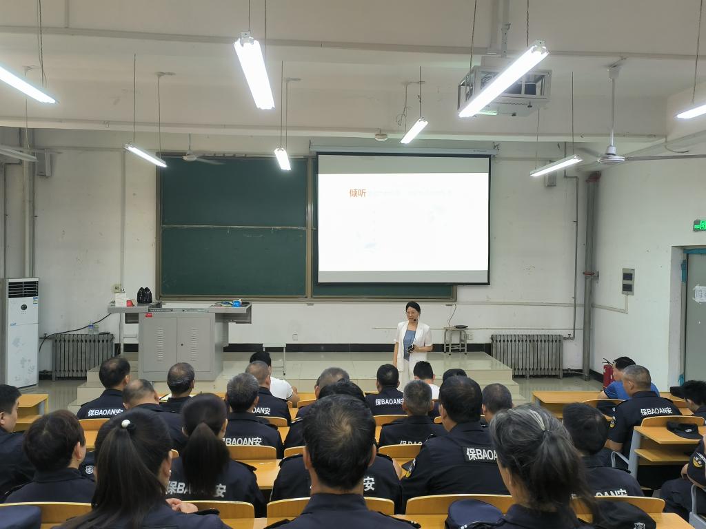 为进一步提升我校安保队伍的“窗口”形象,强化服务育人宗旨意识,做到工作值勤规范化、精细化、精准化, 6月11日上午,保卫处特邀地理与旅游学院曹丽娟老师,在外国语学院A1-101教室对全体保安人员进行了一次职业形象与礼仪培训。