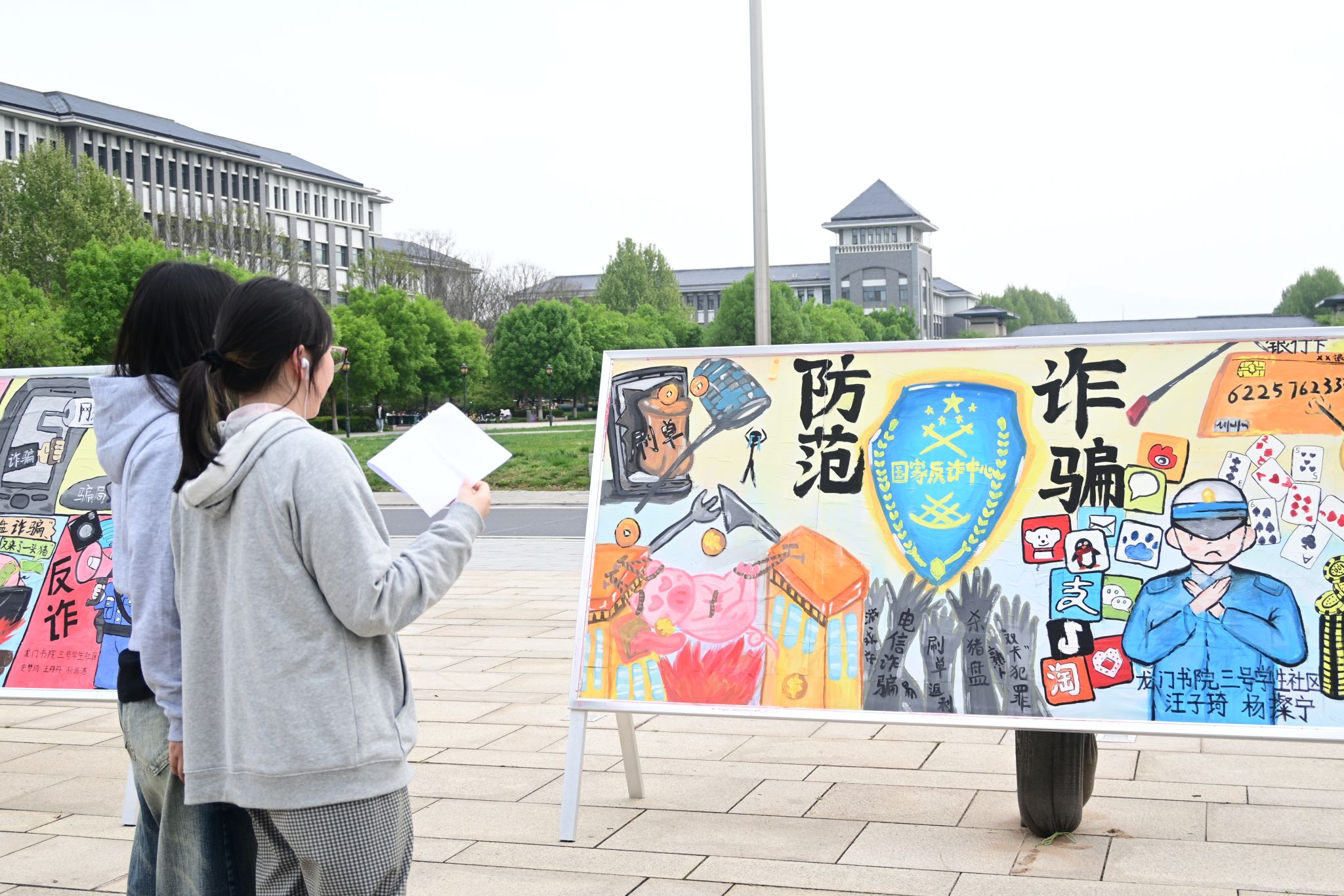 4月9日,我校“青春彩绘 无诈校园”反诈主题涂鸦大赛在图书馆太学广场顺利举办。副校长程金龙、城乡一体化示范区分局副局长赵建魁出席。