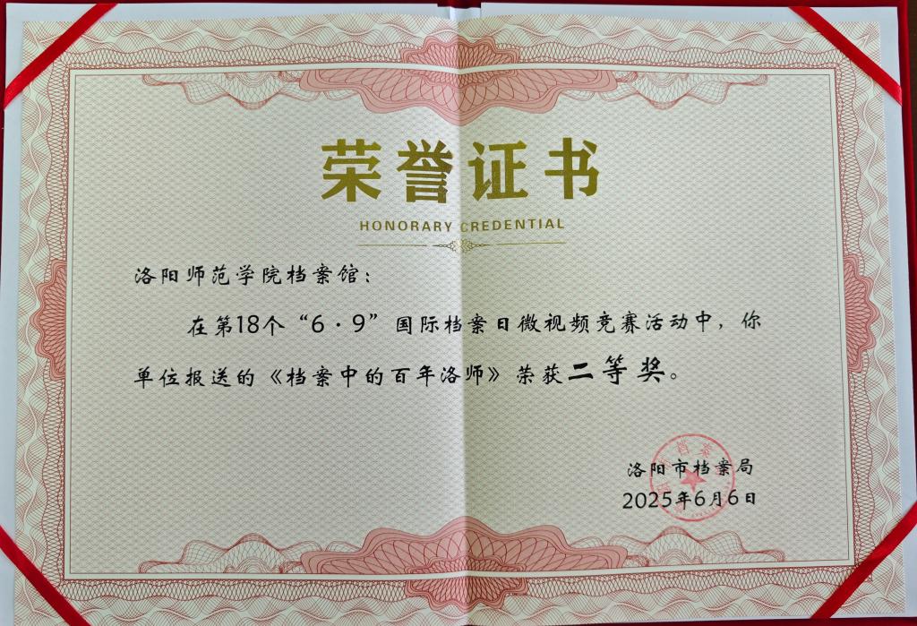 近日,洛阳市档案局第 18 个 “6·9” 国际档案日微视频竞赛活动结果正式公布,档案馆制作的微视频《档案中的百年洛师》荣获二等奖。