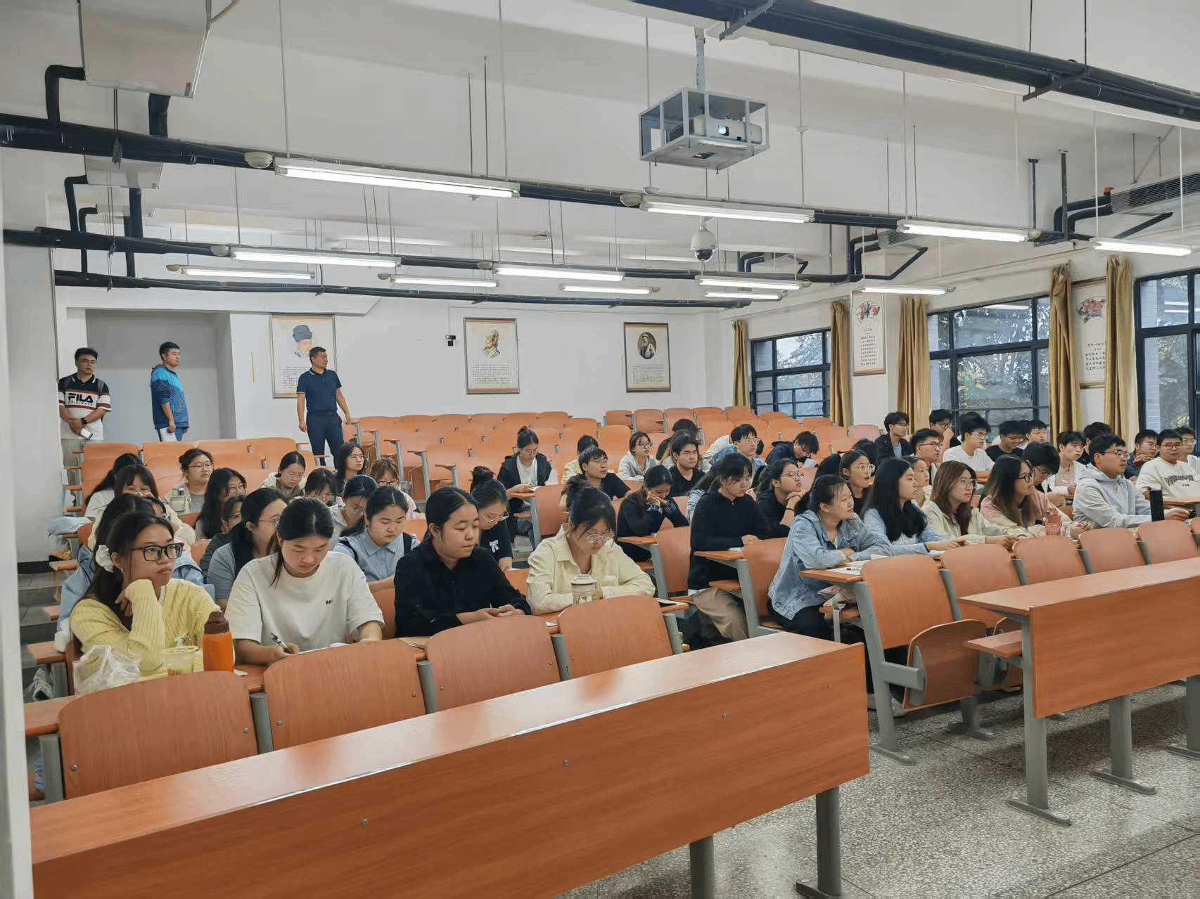 查课期间,院领导走进课堂,实地察看教师授课、学生出勤及课堂秩序,关注教学设备与环境保障,并在课间与师生亲切交流,了解学习动态与教学情况。针对长假前后易出现的学风松懈现象,学院加强督导,重点关注学生到课率与学习状态,辅导员、班主任及时开展教育引导,有效巩固了学风建设成果。
