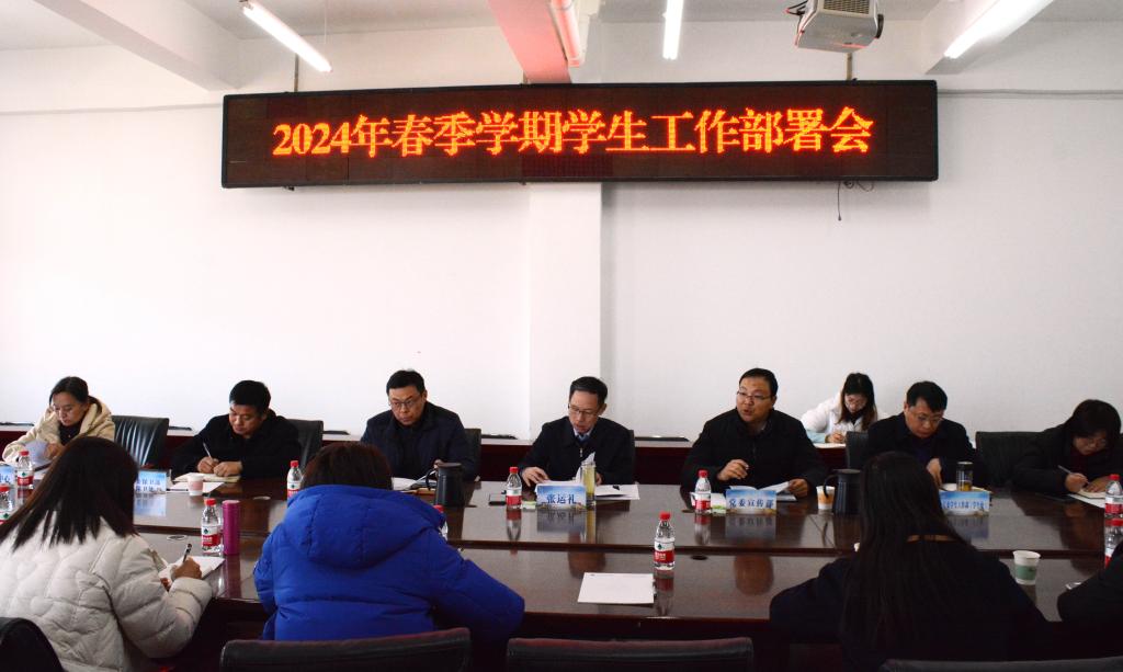 2月25日上午,2024年度春季学期学生工作部署会在敦行楼412团学会议室召开。副校长张运礼,党委宣传部、党委统战部、党委学生工作部(学生处)、党委保卫部(保卫处)、校团委、信息化中心负责同志,各学院学生工作领导小组组长参加会议。会议由党委学生工作部副部长崔家田主持。