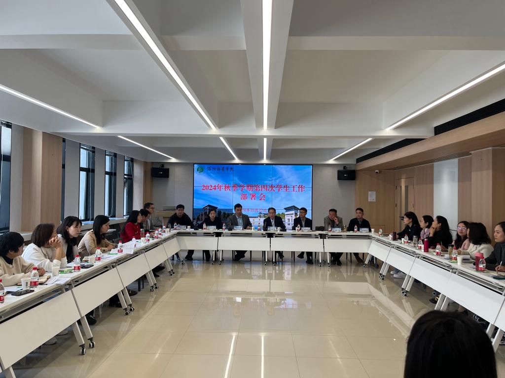 2024年10月22日,我校在开阳书院1号学生社区二楼青年讲堂召开2024年秋季学期第四次学生工作部署会,校党委副书记张运礼出席会议,党委组织部、党委宣传部、党委统战部、党委学生工作部(学生处)、党委研究生工作部(研究生处)、党委保卫部(保卫处)负责同志、各学院学生工作领导小组组长参会会议,会议由党委学生工作部(学生处)部长(处长)郎晓林主持。