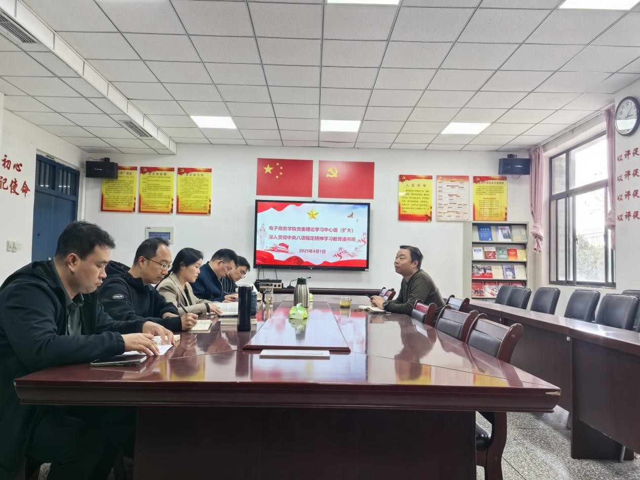 3月31日至4月1日,电子商务学院党委以党委理论学习中心组(扩大)会议的形式,采取集体学习、个人自学和交流研讨相结合的方式,举办深入贯彻中央八项规定精神学习教育读书班。学院领导班子成员、党委委员、支部书记和党政办负责同志参加读书班。