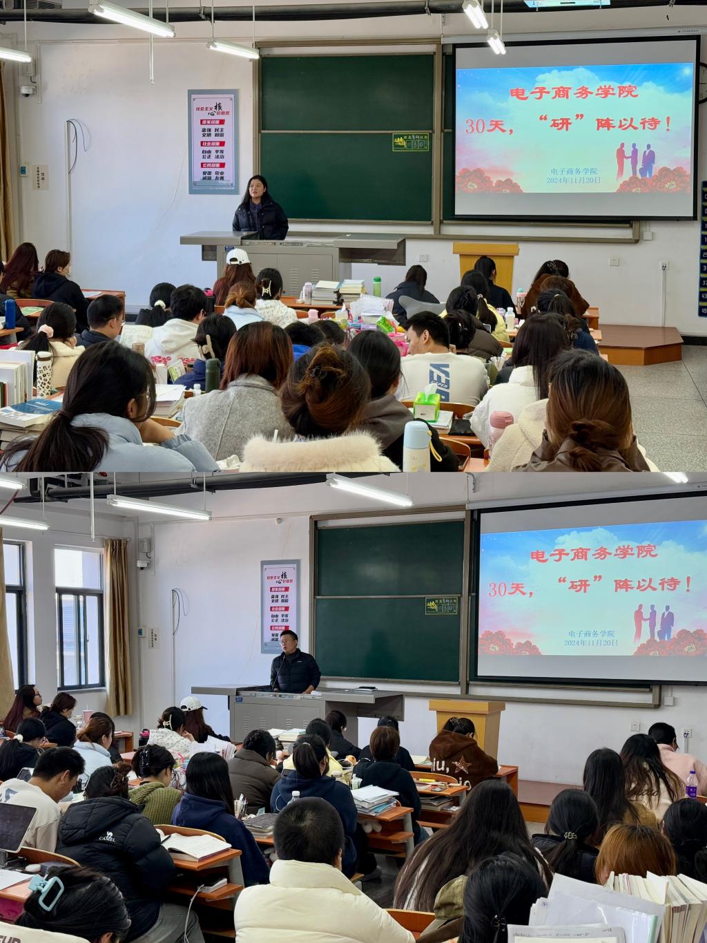 为做好2025届考研学子考前思想心理疏导、鼓舞动员工作,我院于2024年11月20日召开了考研倒计时30天冲刺动员大会。院党委副书记周银平、副院长王军强出席会议。