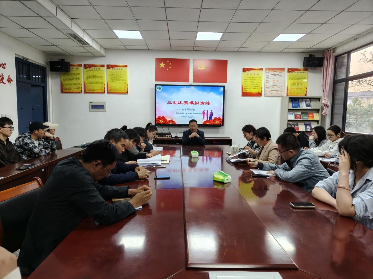 为提升学生创新创业能力,备战第十五届全国大学生电子商务“创新、创意及创业”挑战赛(以下简称“三创赛”),我院于3月25日成功举办三创赛模拟演练活动。学院副院长王军强出席活动并致辞,学院相关专业教师担任评委。