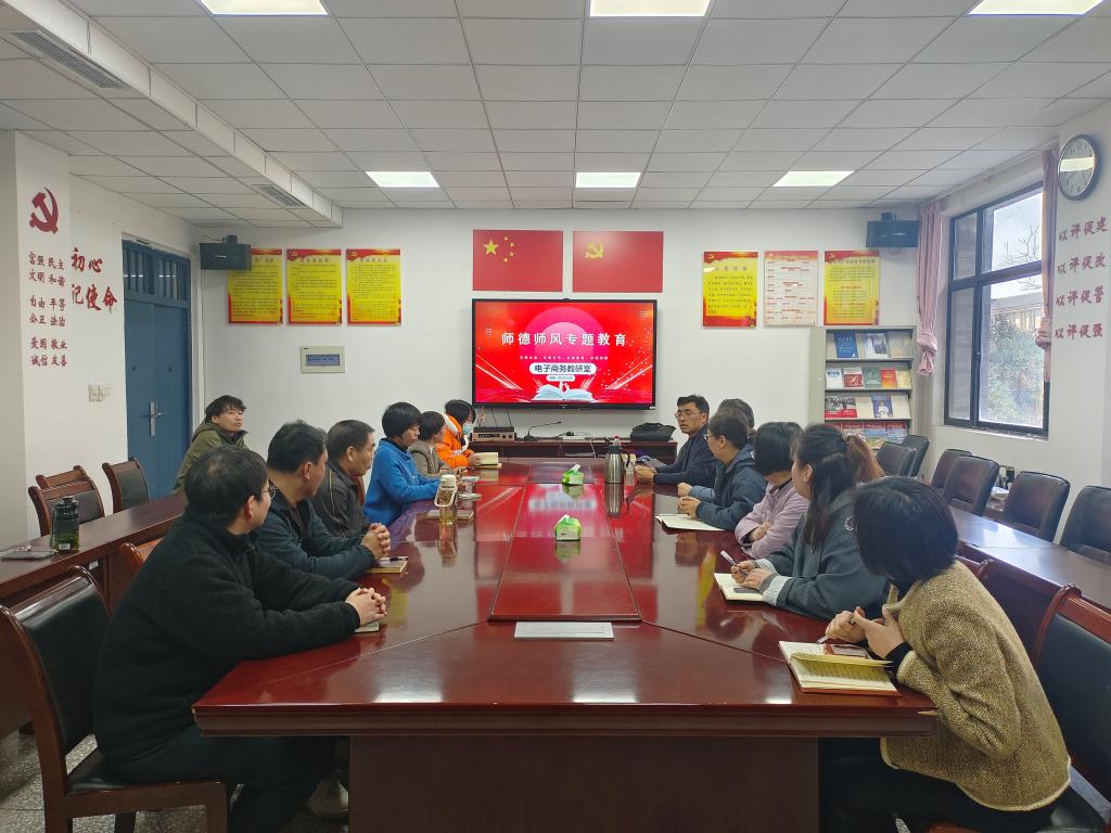 为进一步加强教师队伍思想政治建设和职业道德素养,深化新时代师德师风建设内涵,3月20日下午,电子商务教研室组织全体教师开展了以“立德树人铸师魂,匠心育人守初心”为主题的师德师风专题培训活动。活动由教研室主任黄凯锋主持,全体专任教师参与学习研讨。