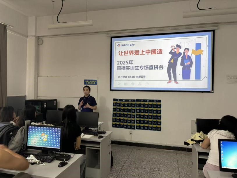 5月22日下午,学院成功开展企业工程师进校园活动,特别邀请格力电器(洛阳)有限公司的王月开展“让世界爱上中国造”直播实训专场宣讲,电商专业相关学生参与了此次活动。