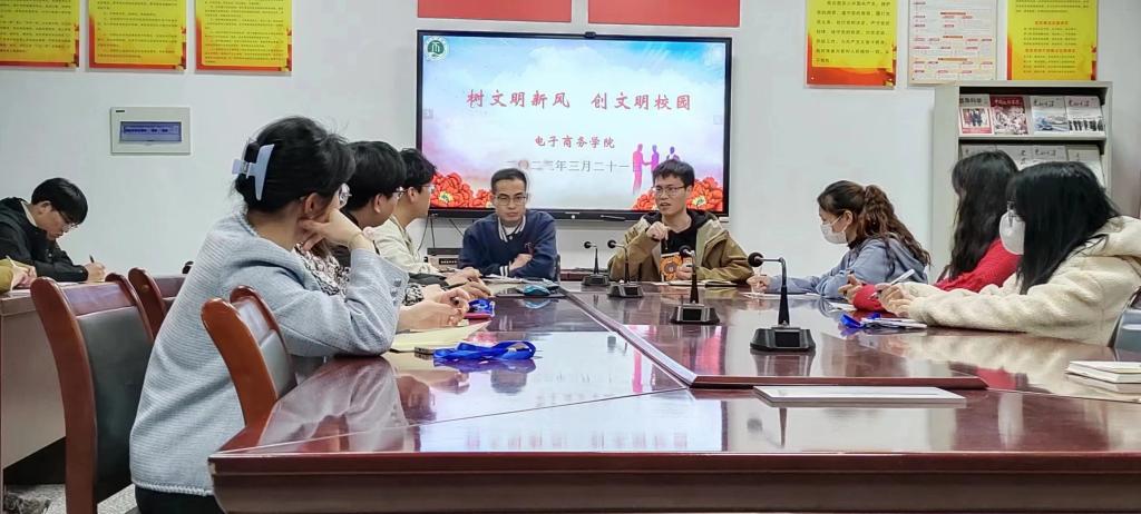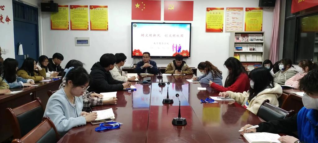 弘扬时代主旋律、创建文明新校园。3月21日下午,学工办组织召开“树文明新风,创文明校园”主题会议。辅导员饶崇渊、康铁良老师和各班班长、团支书及学生会代表参加会议。