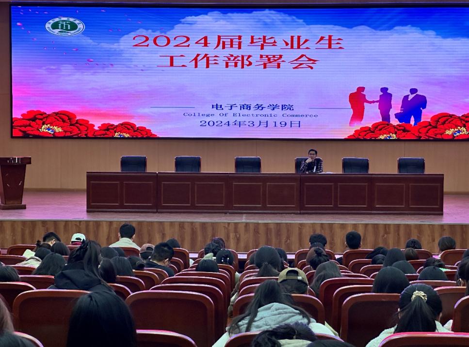 3月19日,电子商务学院举办了毕业生工作部署会议,会议在G1-112举行。张荣光副书记出席该会议并讲话,秦雪阳老师主持会议并回答学生问题,刘爱红老师就就业工作给学生们做了说明。