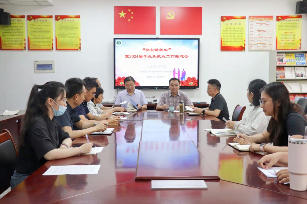 为进一步推进2024届毕业生就业工作落细落实落地,实现毕业生更充分、更高质量就业,5月20日上午,电子商务学院在会议室召开“院长讲就业”专题活动。我院党委书记翟丹、院长张毅、副院长王军强、教研室主任及毕业班班主任参会。会议由我院院长张毅主讲。