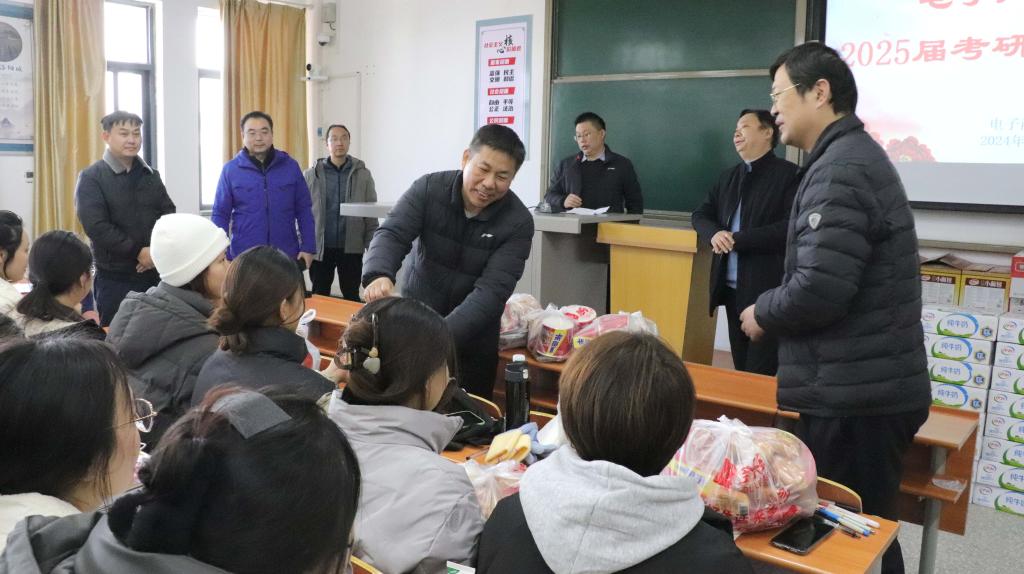 随后,各位领导为考研学子发放了精心准备的慰问礼包,里面有暖心小零食等,寓意着对他们“能量满满、学思顺遂”的美好期许。