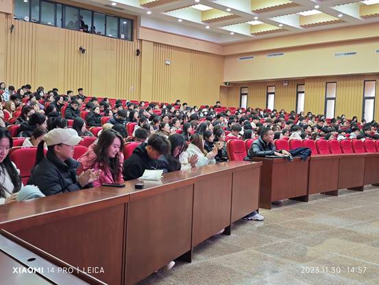 宣讲活动上,娄云云律师主要介绍了我国宪法的历史、现状,赵保锋律师从大学生生活、学习、社交、就业中遇到的法律问题进行详细讲解,以生动的案例、详实的数据分析,深入浅出地为同学们展开了一场精彩的普法讲座。