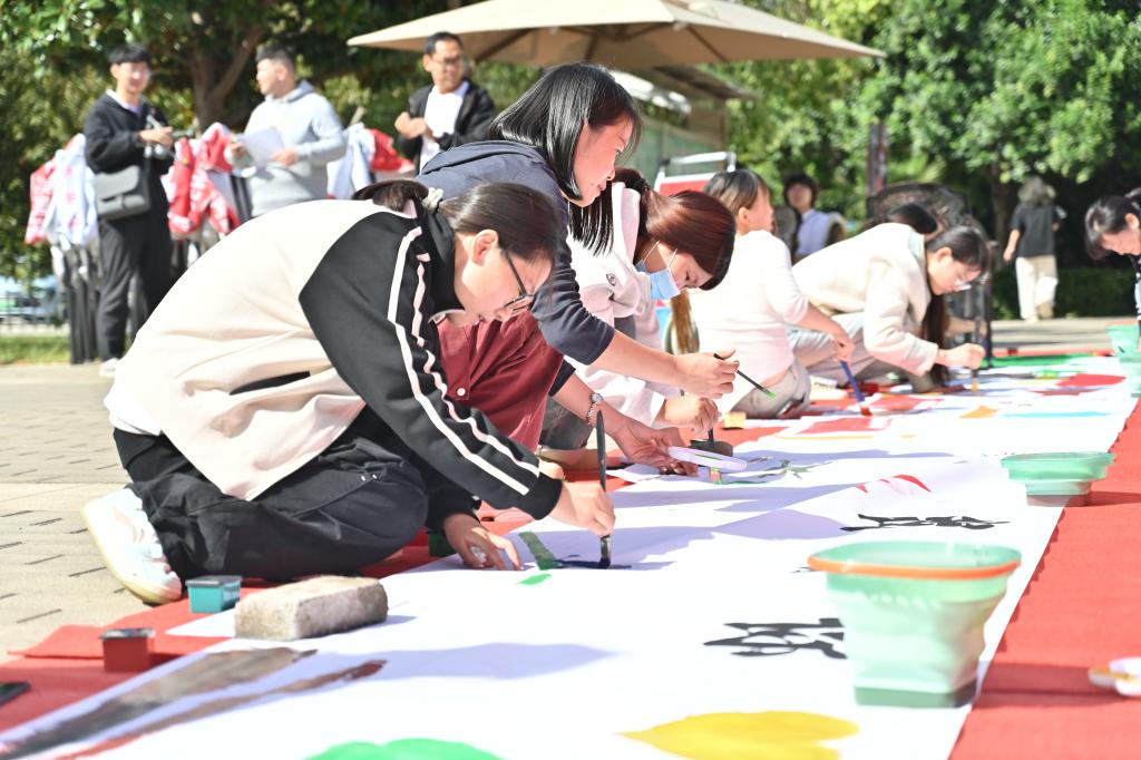 开展文艺活动,厚植家国情怀。资产经营有限责任公司举办“我与国旗同框”及手绘长卷迎国庆活动。学生社团围绕“礼赞伟大祖国,唱响青春赞歌”主题,举办“传承红色基因 凝聚奋进力量”观影、“喜迎国庆 礼赞祖国”知识竞答、“寸心寄华夏·声演韵芳华”话剧展演、“祖国在我心中”剪纸、海报作品展与“厚植家国情怀——青春告白祖国”主题示范团日等形式多样的社团活动,丰富校园文化生活。问礼书院1号学生社区开展“为祖国敬一杯茶”主题活动,参与者以茶为媒,为祖国母亲献上最诚挚的生日祝福。问礼书院2号学生社区举办“荧光献礼,国庆悦跑”“迎国庆,志愿服务我先行”等活动,以实际行动展现青春担当。问礼书院3号学生社区举办“共话国庆 同享温馨”暨国庆假期留校学生座谈会、“迎国庆,唱响志愿精神”青年志愿服务、“红色主题猜猜猜”趣味主题党日、集体观影等活动,感受革命先辈们的奋斗精神和爱国情怀。音乐学院联合开阳书院1号学生社区举办“我为祖国送祝福”手绘迎国庆、“国旗下的青春合照”、红歌快闪主题团日等活动,表达了对祖国的深切祝福。