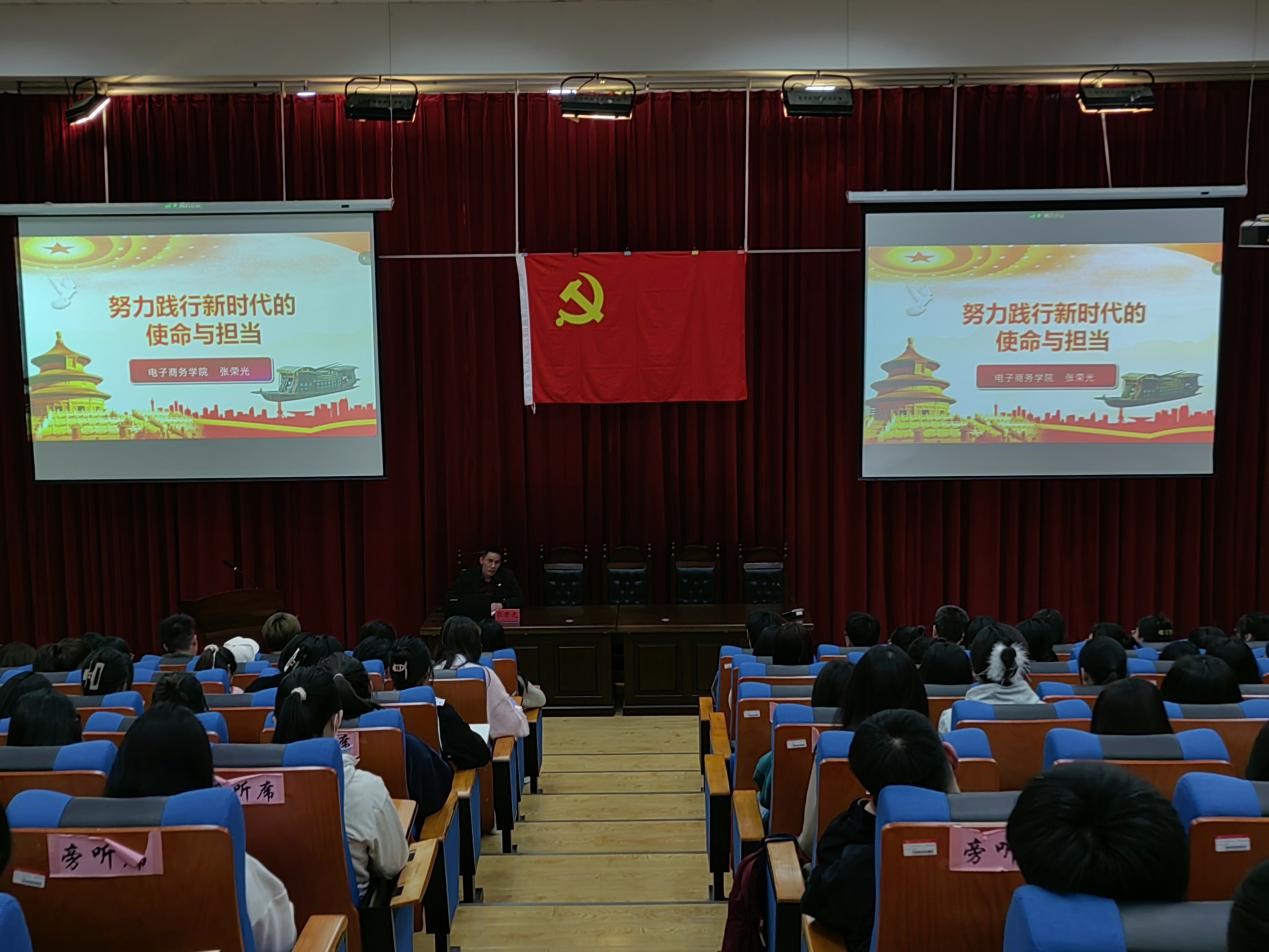 随后,张荣光以“努力践行新时代的使命与担当”为题,基于履行使命、敢于担当、百年建党史和新时代、新征程、新使命、新格局几点考虑提出新时代青年应当具备担当精神。张荣光结合实际生活向我们解释了担当精神的丰富内涵,指出新时代党员应学会“勇于担当”、“敢于担当”、“擅于担当”,不断提升自己的政治自觉、素养能力和思想水平,做到不忘初心、对党忠诚、担当作为、增添本事、清正廉洁。最后,他号召同学们牢记时代的使命与责任,切实夯实自身的理想信念,筑牢干事创业的政治定力和能力基础,赓续好红色血脉,举好旗帜,走好中国式现代化发展的道路,为祖国的繁荣富强贡献智慧和力量。
