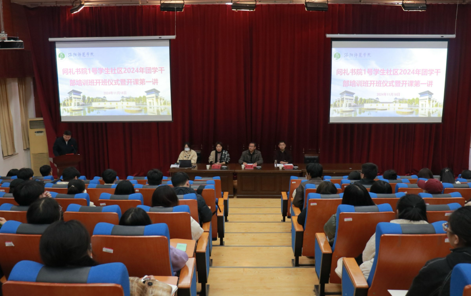 为完善问礼书院1号学生社区组织建设,形成良好的工作局面,问礼书院一号学生社区于11月18日晚在法学与社会学院模拟法庭举办团学干部培训班开班仪式暨开课第一讲。商学院党委书记陈立栋,法学与社会学院党委书记刘伟、党委副书记谭音,以及学生社区辅导员张晓添、刘曙光、唐银梅等出席活动。活动由宋豪主持,问礼书院一号学生社区学生会全体学生干部、团委学生干部及学生骨干参加。