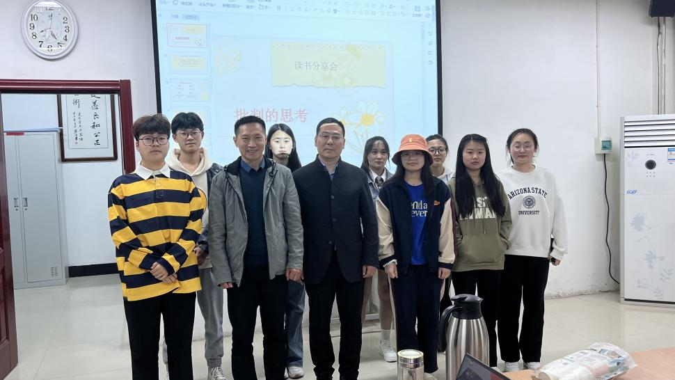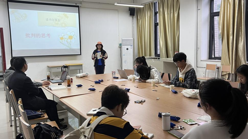 “书味在胸中,甘于饮陈酒”,4月27日晚法律援助中心第34期淇奥读书会在法学与社会学院A3-201如期举行。本期读书会由2022级法学本科班史正阳和外语学院牛菁菁担任主讲人,周柏红老师作为特邀嘉宾进行点评,张如海老师也参与其中,大家共同品读布鲁克的《批判的思考》。