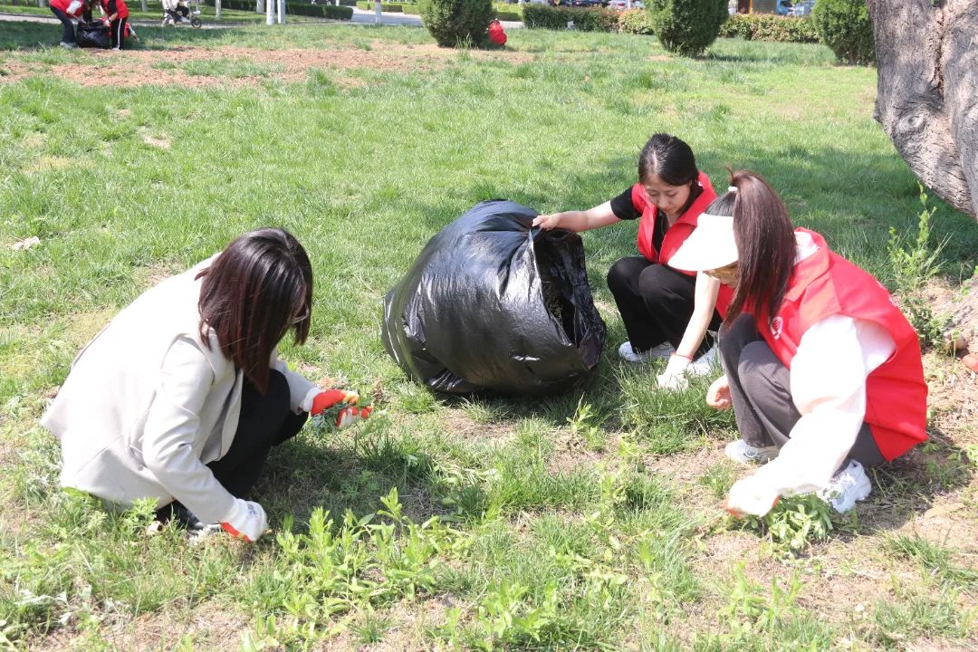 4月27日下午,我院于校医院东边草地开展“美丽校园,文明有我”志愿除草服务活动,我院全体老师和部分学生参加此活动。