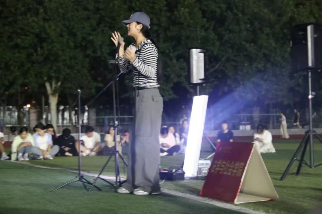 操场灯光闪烁,音响设备准备就绪,气氛热烈。随着主持人登场,音乐会正式拉开帷幕。弦风琴行成员首先演唱经典中秋曲目《但愿人长久》,婉转歌声回荡夜空,将大家带入中秋团圆的美好氛围中。随后,摇滚乐队激情登场,强烈的节奏、充满活力的演奏嗨翻全场,同学们不由自主地跟着节奏尽情摇摆,军训的疲惫一扫而空,现场掌声雷动。紧接着,书院学生纷纷登台献艺,流行歌曲、相声、舞蹈等多种表演形式轮番上阵,同学们纷纷沉浸在艺术的海洋中。
