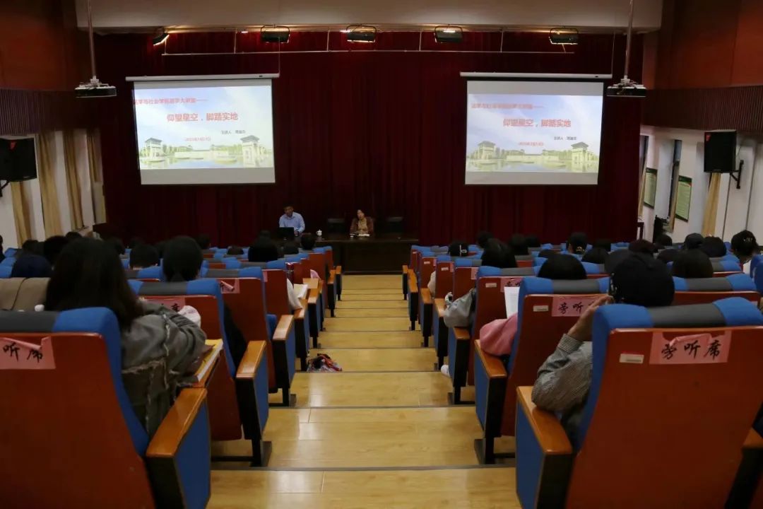 3月14日晚,由招生就业处主办,法学与社会学院承办的启梦大讲堂系列讲座之“仰望星空,脚踏实地”在我校法学与社会学院A3-202校园法庭举行。本次讲座由我校2015届法学毕业生,现河南洛太律师事务所执业律师,老贾说法微信公众号所有人贾振东担任主讲人。法学与社会学院党委副书记谭音出席讲座,法学专业部分学生参加本次讲座。