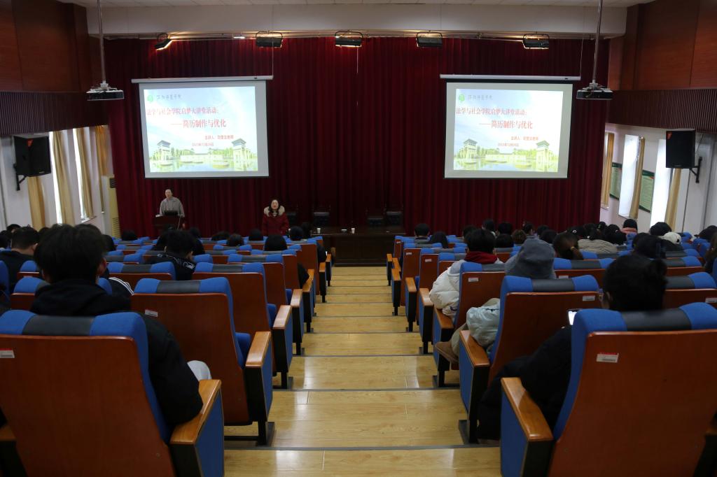 12月26日下午,由校招生就业处主办,法学与社会学院承办的启梦大讲堂系列讲座之“简历制作与优化”在我校法学与社会学院A3-202举行。学院刘奎汝老师担任主讲人,全体2020级学生到场学习,讲座由学院就业创业办公室副主任褚畅主持。