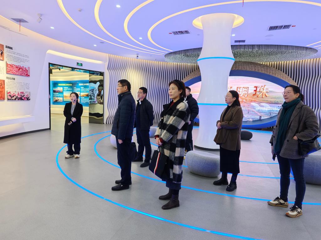 在孟津区文博会议中心,讲解员详细讲解了孟津区的发展历程与城市规划,让参观者身临其境地体验了该区的蓬勃发展态势。随后,大家参观了小浪底研学产业孵化园,深入了解了小浪底品牌化的发展及其取得的成果。李方方详细介绍了孟津区在服务地方经济发展和城市形象提升方面的最新进展。她指出,孟津区正致力于打造文旅文创产业新高地,期待与我院在人才培养、文旅项目开发等方面展开多方面合作,共同推动产学研一体化进程,实现共赢发展。