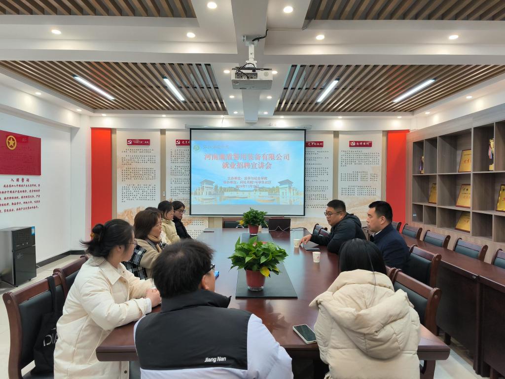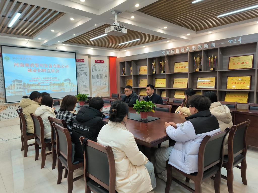 11月19日,受我院邀请,洛阳市鹰盾警用装备有限公司来到问礼书院1号学生社区开展就业宣讲会。此次宣讲会吸引了我院行政管理专业的学生积极参与,我院党委副书记谭音和就业创业工作办公室副主任褚畅出席宣讲会。