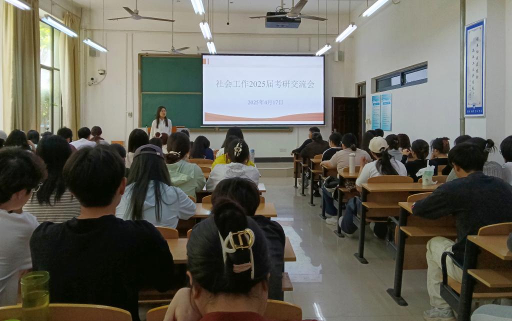 为了给同学们搭建高效的交流平台,助力其明晰考研路径、汲取成功经验,4月17日下午,由校招生就业处主办、法学与社会学院承办的启梦大讲堂系列讲座之“2025届社会工作专业考研经验交流会”在A3-108教室举行。本次交流会邀请2021级在考研、考公中成功上岸的优秀学子担任主讲人,2022级社会工作专业班主任石玉娟主持会议,社会工作专业老师出席会议,2022级、2023级学生参加会议。