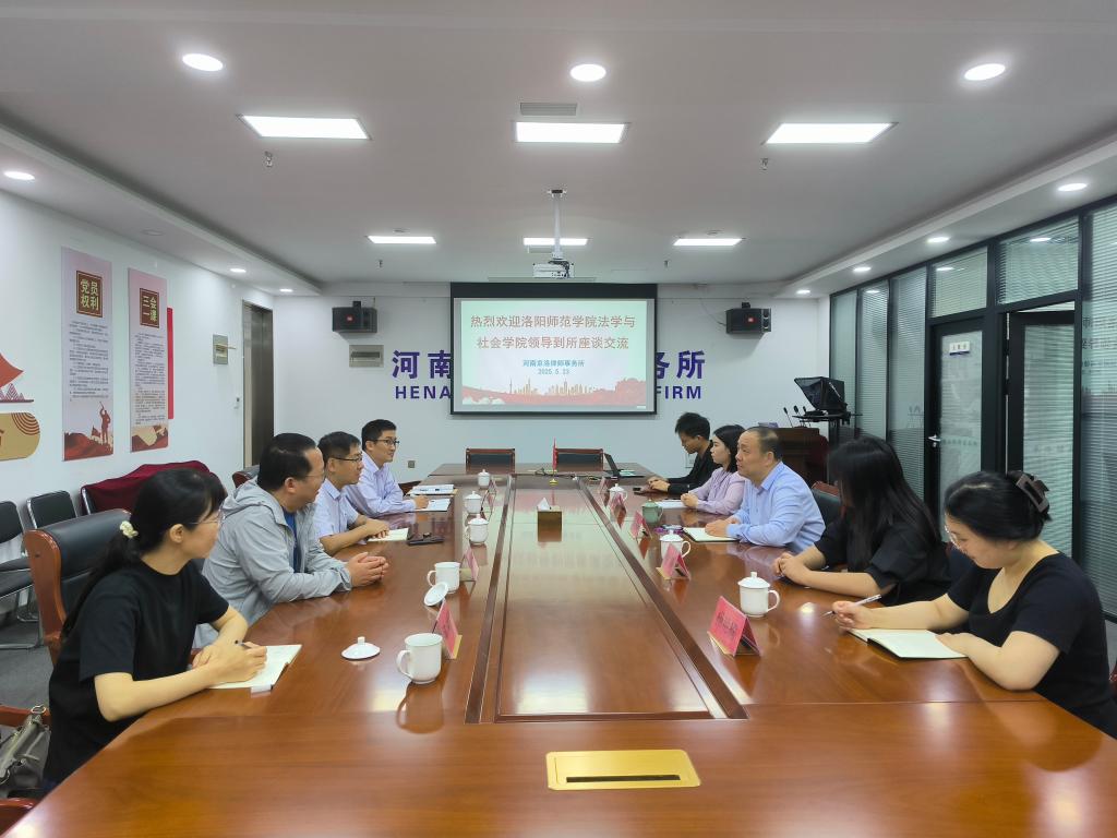在河南京洛律师事务所,主任魏海涛热情接待了我院一行。他详细介绍了律所的核心业务领域、专业化团队建设成果及重大社会法律服务项目,并表达了与高校深化合作的意愿。刘伟围绕我院法治人才培养理念,介绍了法学专业学科建设成果、学生实践能力培养及毕业生就业情况,希望通过共建“理论+实务”双轨育人模式,在实习实训、案例教学、职业规划等方面开展深度合作。双方就法律人才培养、实习留用机制等问题展开热烈讨论,初步达成合作共识。