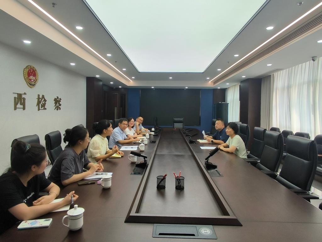 在洛阳市涧西区人民检察院,党组成员、副检察长袁沂、第五检察部主任唐韬涛对我院的到访表示热烈欢迎。刘伟介绍了学院的基本情况,并围绕学生培养目标、课程体系构建以及实践能力培养等作了详细阐述,期望依托检察院丰富的实务资源,为学生打造优质实习平台,助力学生在实践中深化理论认知,提升法律实务操作技能,培养兼具专业素养与实践能力的法治人才。袁沂表示,希望通过检校合作,充分发挥高校教师的理论优势和人才资源,指导检察院工作人员开展学术研究、论文撰写,促进司法实践与学术理论的双向赋能,共同探索帮扶涉罪未成年人回归社会的有效路径,实现资源共享、优势互补、协同发展的共赢局面。