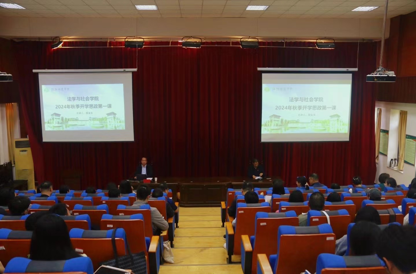 为深入学习贯彻党的二十届三中全会精神,10月9日下午,副校长程金龙在A3-202校园法庭为我院师生讲授秋季开学思政第一课。思政第一课由学院党委书记刘伟主持,学院师生等120余人参会。