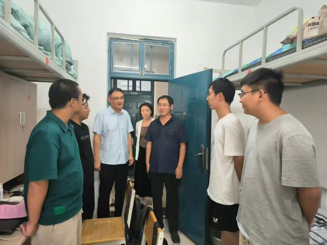 9月8日下午,我院全体领导班子成员和问礼书院1号学生社区育人导师(辅导员)共同深入宿舍,走访慰问学生,与学生亲切交谈,了解开学后的思想状态和适应情况。