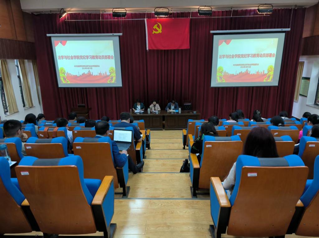 会上,党委副书记谭音宣读了《中共洛阳师范学院法学与社会学院委员会关于在全院党员中深入开展党纪学习教育的实施方案》。张姣云作动员讲话,对学院党纪学习教育提出具体要求,一是原原本本学,逐条逐句学,做到逐章逐条学纪,入脑入心知纪;二是把条例贯彻落实到工作中,把党纪学习教育同学校、学院的中心工作结合起来,两手抓、两促进;三是统筹好党纪学习教育和日常工作学习的关系,以优良的作风、严明的纪律推动学院高质量发展。