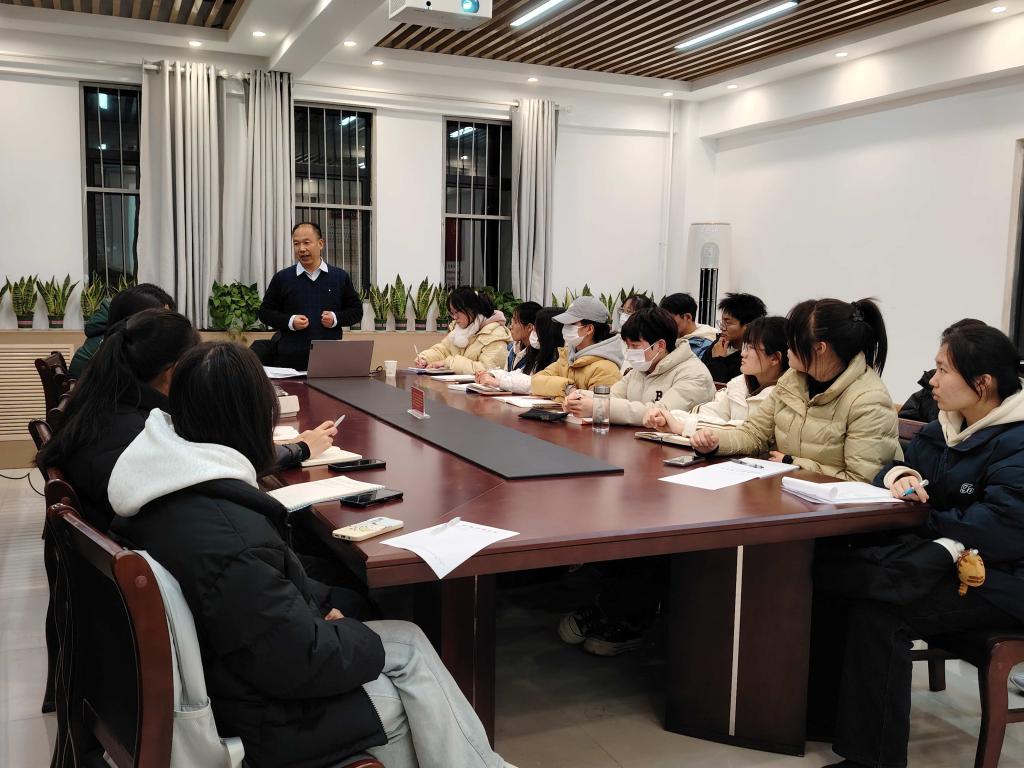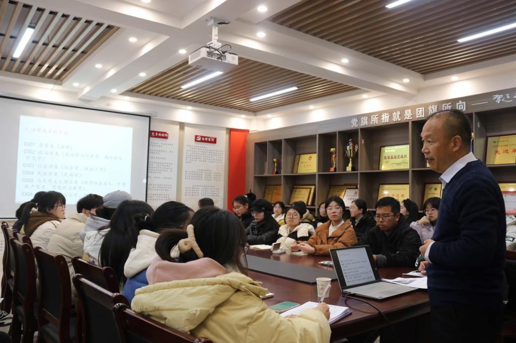 12月28日晚,校关工委鲁献慧教授在问礼书院一号学生社区党团活动室开展“阅读指导进书院”活动,党委书记张姣云、团委副书记宋豪和法学与社会学院全体第四期青马班学员参加,活动由党委副书记谭音主持。