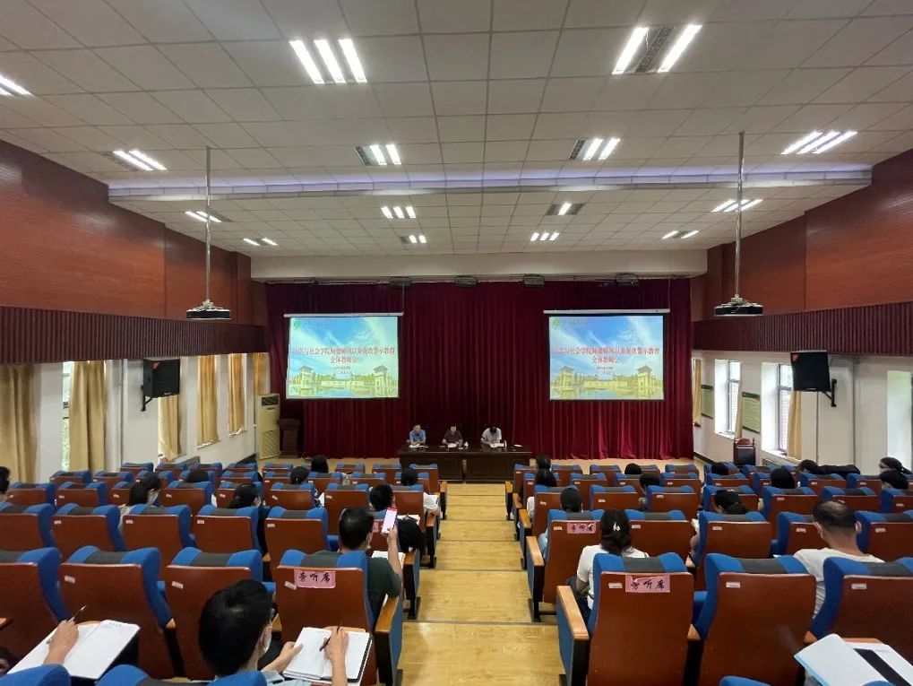 为部署近期学院各项工作,10月19日下午,我院于A3-202校园法庭召开全体教师大会,院党委书记张姣云、党委副书记谭音、副院长张如海出席会议,全体教职工参加会议,会议由院长秦永超主持。