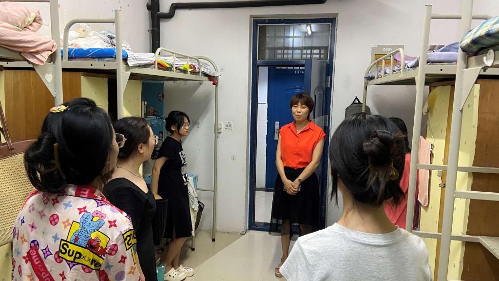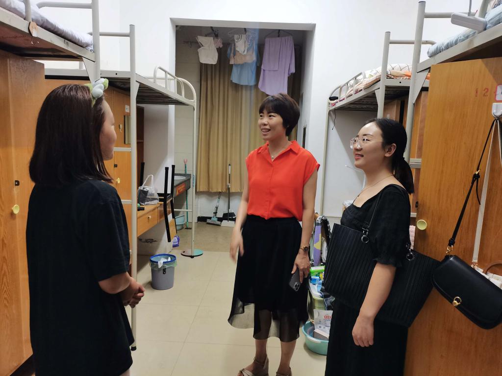 7月26日晚,我院党委副书记谭音、2021级辅导员宋豪和2022级辅导员褚畅到学生宿舍看望暑期留校学生,实地了解学生在新宿舍的住宿情况及专业实习、考研复习、日常生活等情况。