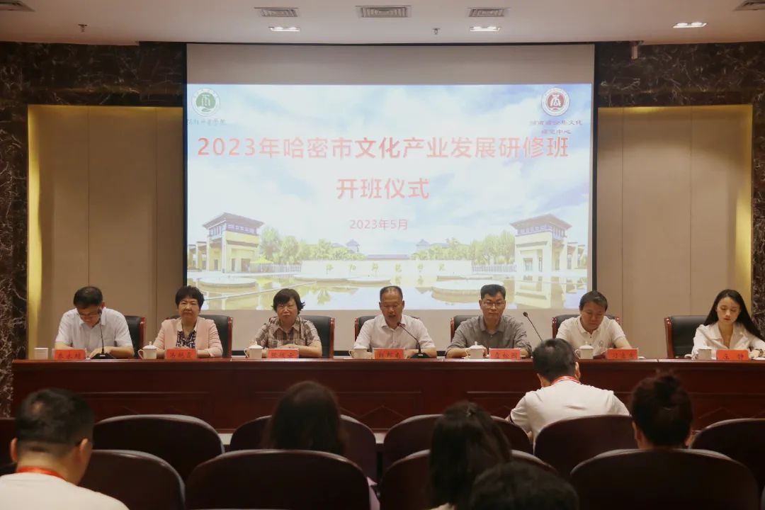 为做好新时代对口援疆工作,深入实施文化润疆工程,加强豫哈两地文化交流,5月18日上午9时,我校在图书馆118报告厅举行2023年哈密市文化产业发展研修班开班仪式。洛阳师范学院副校长赵邦屯、河南省文化和旅游厅公共服务处副处长霍松园、哈密市文体广旅局党组成员、哈密歌舞团党支部书记刁立忠、哈密市文体广旅局社会文化和艺术管理科负责人庄静、法学与社会学院党委书记张姣云、洛阳师范学院图书馆直属党支部书记、河南省公共文化研究中心副主任马艳霞出席开班仪式,来自哈密市文旅行政管理部门和文化产业的30名学员参加开班仪式。仪式由法学与社会学院院长秦永超主持。