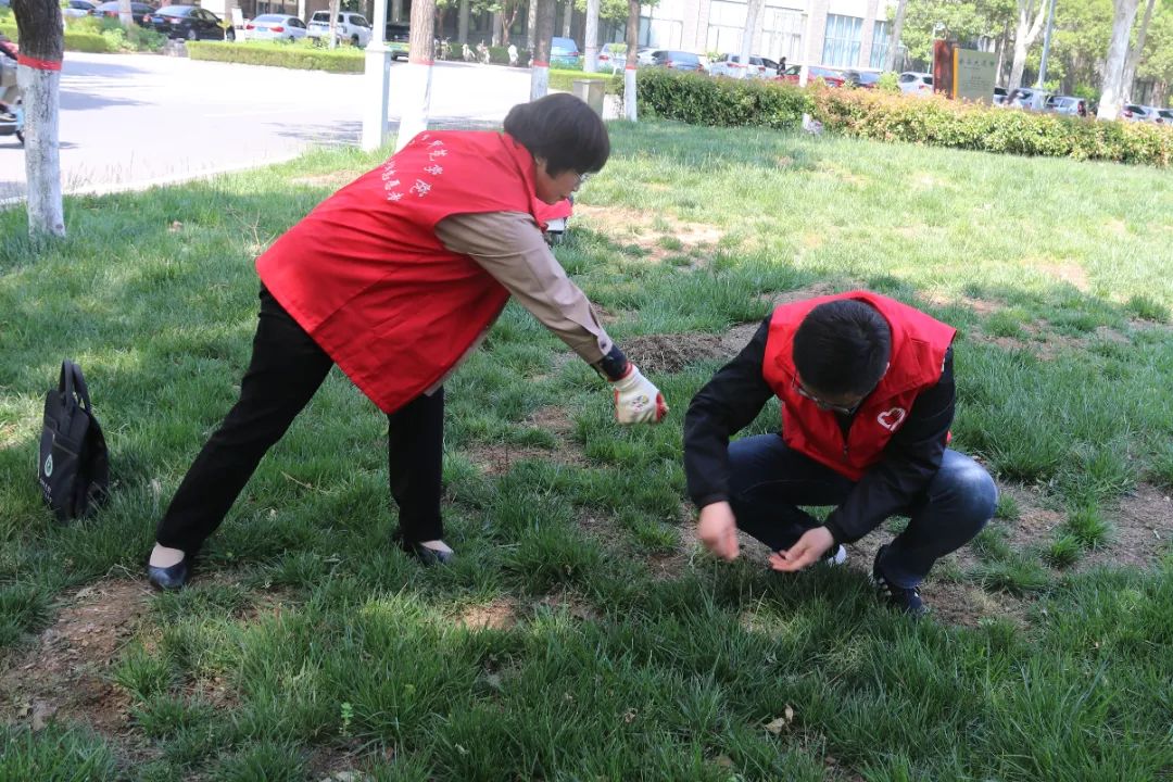 4月27日下午,我院于校医院东边草地开展“美丽校园,文明有我”志愿除草服务活动,我院全体老师和部分学生参加此活动。