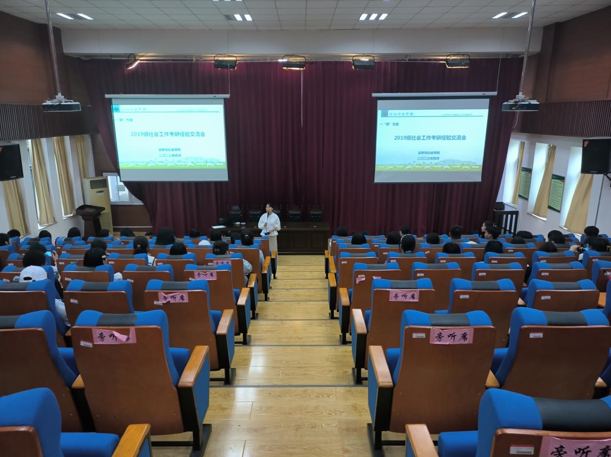 为加强我院学风建设,增强学生考研积极性,4月20日下午,我院社会工作系在A3-202校园法庭召开考研经验交流会,特邀2019级十位考研上岸的学长学姐们分享备考经验,会议由韩颖娟老师主持,社会工作系全体师生参加。