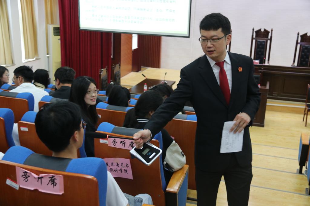 为进一步提高我校学生的法治意识,创新法治教育的有效方式,4月20日上午,洛阳高新法院巡回法庭来到我校,在A3-202校园法庭公开开庭审理常建武、韩巧格诉段朕朕等生命权纠纷一案。学校法律事务中心副主任徐业尧、我院党委副书记谭音、法学系部分教师以及来自各学院的同学们观摩了庭审。