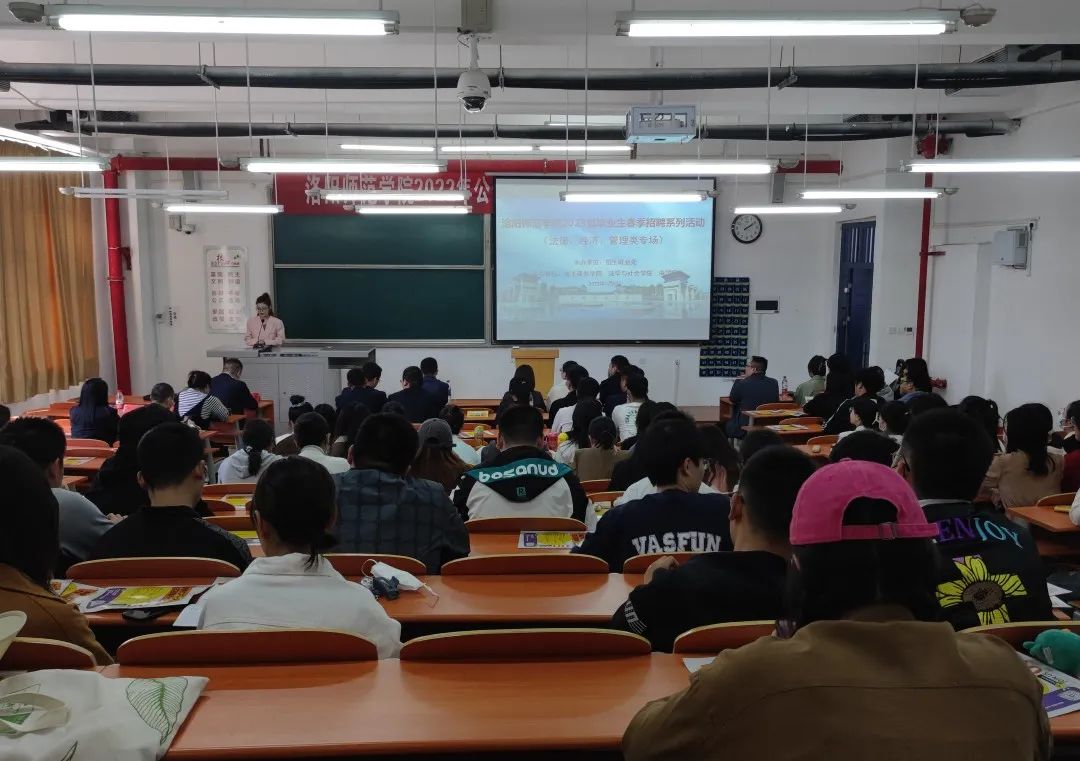 为深入贯彻党的二十大精神,认真落实党中央、国务院“稳就业”“保就业”决策部署,抢抓春季开学后促就业关键期,全力促进我校毕业生顺利就业、尽早就业。3月9日下午,我校采用线上与线下结合的形式在逸夫教学楼G4-102教室开展了2023届毕业生春季招聘系列活动(法律、经济、管理类专场)。邀请洛阳摩基供应链管理有限公司、洛阳市航远电子商务有限公司、河南森合律师事务所、河南张振龙律师事务所、河南君信合律师事务所、上海链家房地产经纪有限公司、洛阳阳光社会工作服务中心和正大天晴药业集团股份有限公司8家优秀企业参与本次招聘宣讲,提供工作岗位130余个,吸引近150人参加。