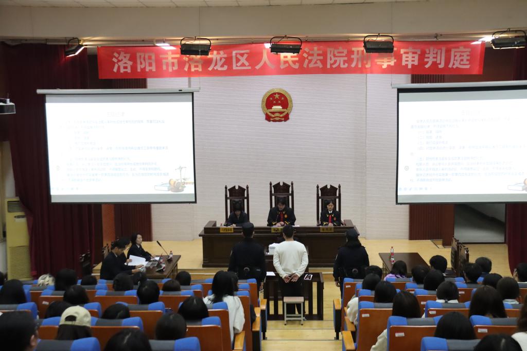 为进一步加强校园法治文化建设,提高大学生法治意识,10月30日下午,洛阳市洛龙区人民法院巡回法庭来到我院校园法庭,公开开庭审理帮助信息网络犯罪活动罪一案。党委副书记谭音、部分教师代表及来自各书院社区的160余名师生代表观摩了庭审。