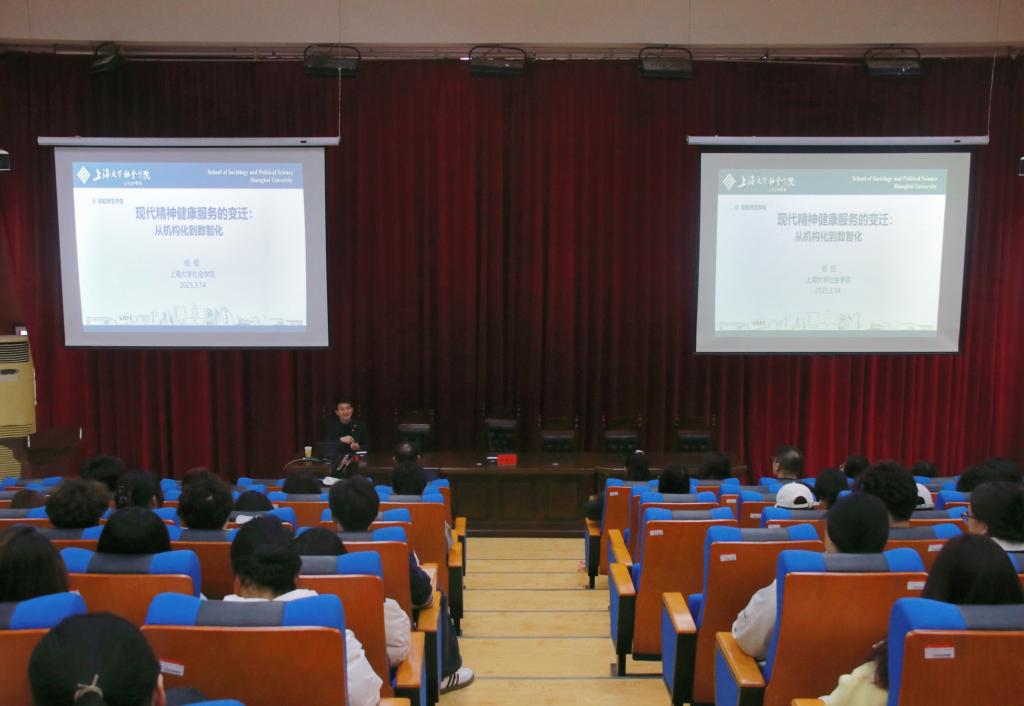 3月13日下午,我院特邀上海大学社会学院博士生导师杨锃教授于A3-202开展《现代精神健康服务的变迁:从机构化到数智化》主题学术报告。社会工作专业全体师生参加,讲座由院长秦永超主持。