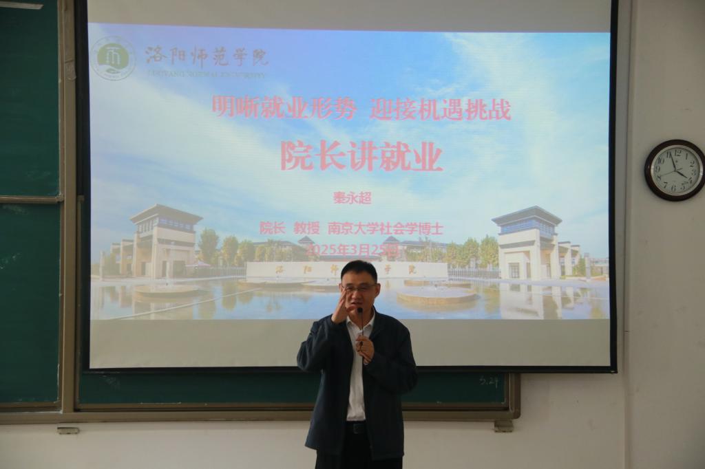 为帮助学生准确把握当前就业形势,提前做好职业规划,积极应对未来就业挑战,3月25日下午,我院在A3-115教室举办“院长讲就业”活动。院长秦永超作专题报告,2021级和2022级学生代表参会。