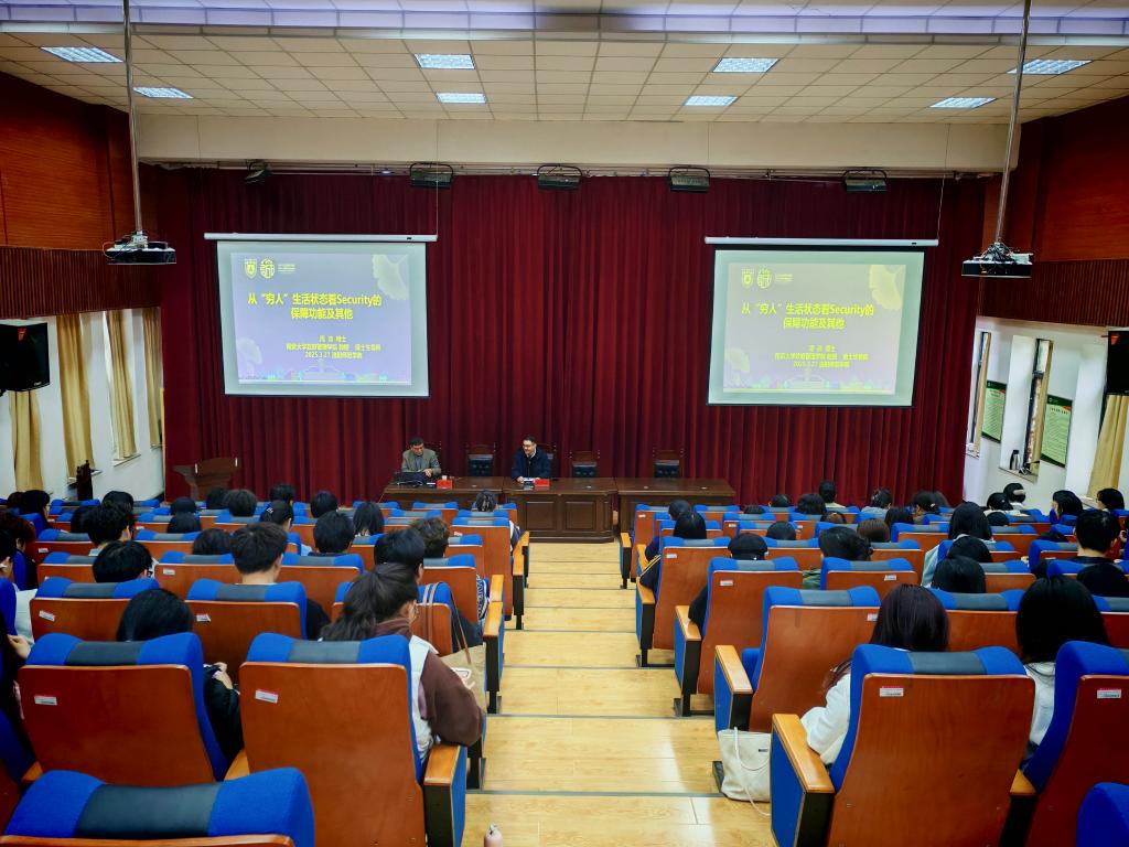 报告会上,周沛围绕社会保障展开深度分享。他从社会保障的定义、兴起背景和发展历程为切入口,将复杂的理论知识以通俗易懂的语言娓娓道来,帮助师生们清晰把握社会保障的基本功能。同时,他还结合国外实地考察经验,介绍了其他国家社会保障的实际应用,并与我国精准扶贫政策进行对比分析,生动展现了不同国家社会保障功能的差异,拓宽了大家的国际视野。周沛指出,社会保障的核心价值在于为社会成员提供更好物质条件和生活环境。同时,他对在座学生提出殷切期望,鼓励大家在日常学习中养成思考与钻研的习惯,持续提升自身综合素养与创新能力,将理论知识与社会实践紧密结合,更好地为社会发展贡献力量。